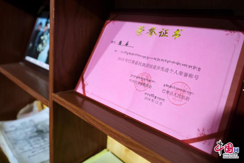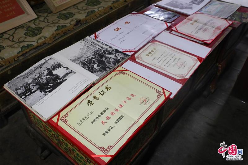 “記憶里的珍珠”紅色收藏紀念館創(chuàng)辦人扎西達杰所獲榮譽證書。中國網記者鄭偉攝