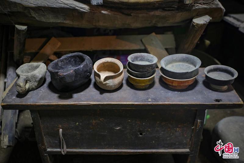 “記憶里的珍珠”紅色收藏紀念館內景·藏式碗具。中國網記者鄭偉攝