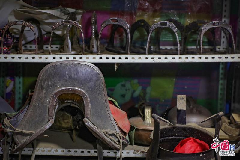 “記憶里的珍珠”紅色收藏紀念館內景·馬具用品。中國網記者鄭偉攝