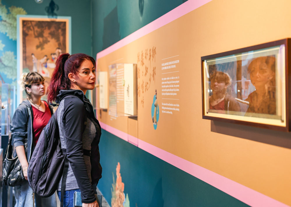 7月23日,觀眾在開幕式上參觀。當(dāng)日,“龍馬風(fēng)度 體育精神——中華體育文化展”在法國(guó)巴黎巴士底設(shè)計(jì)中心開幕。新華社記者 張帆 攝
