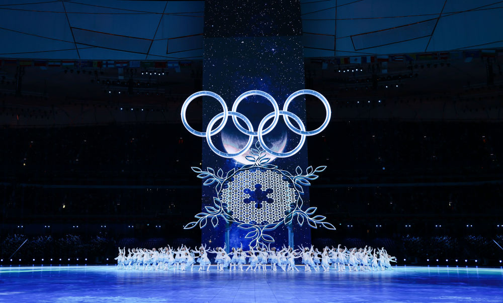 這是2022年2月4日晚在北京國(guó)家體育場(chǎng)舉行的第二十四屆冬季奧林匹克運(yùn)動(dòng)會(huì)開幕式上的“構(gòu)建一朵雪花”環(huán)節(jié)。新華社記者 曹燦 攝