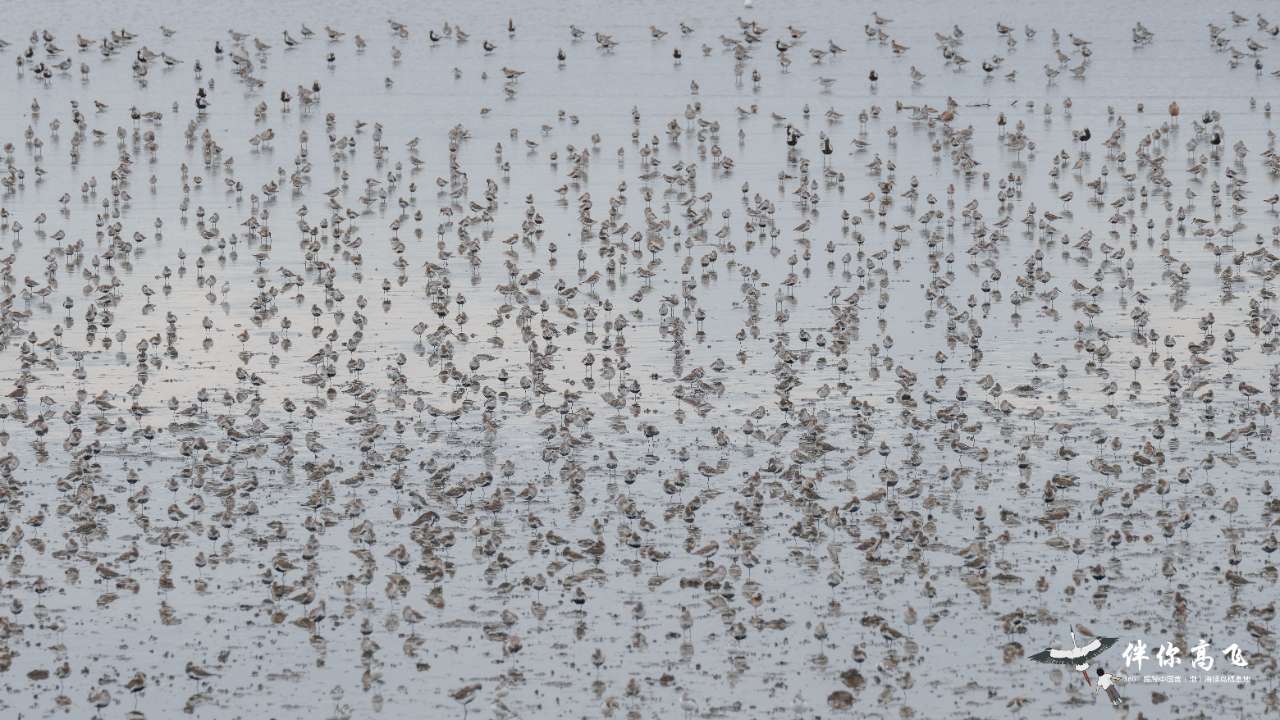 其中,丹東鴨綠江口候鳥棲息地位于東亞-澳大利西亞候鳥遷飛通道北部,提名地內充沛的底棲動物和各種漁業(yè)資源,每年為二十萬到四十萬只候鳥提供了關鍵的能量補給來源,是重要的候鳥停歇地和補給站之一。圖為在灘涂覓食的大批鸻鷸。(徐譚 攝/光明圖片)