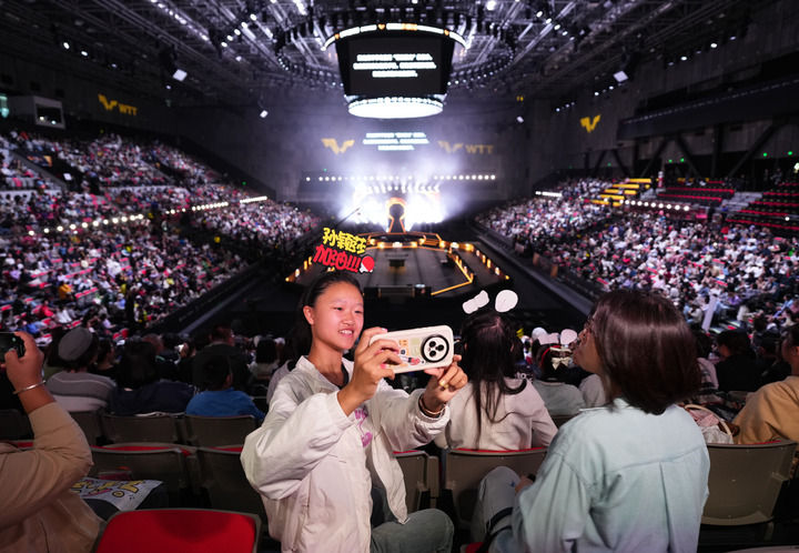 10月3日,觀眾來(lái)到首鋼園區(qū)觀看世界乒乓球職業(yè)大聯(lián)盟(WTT)中國(guó)大滿貫賽。新華社記者 張晨霖 攝