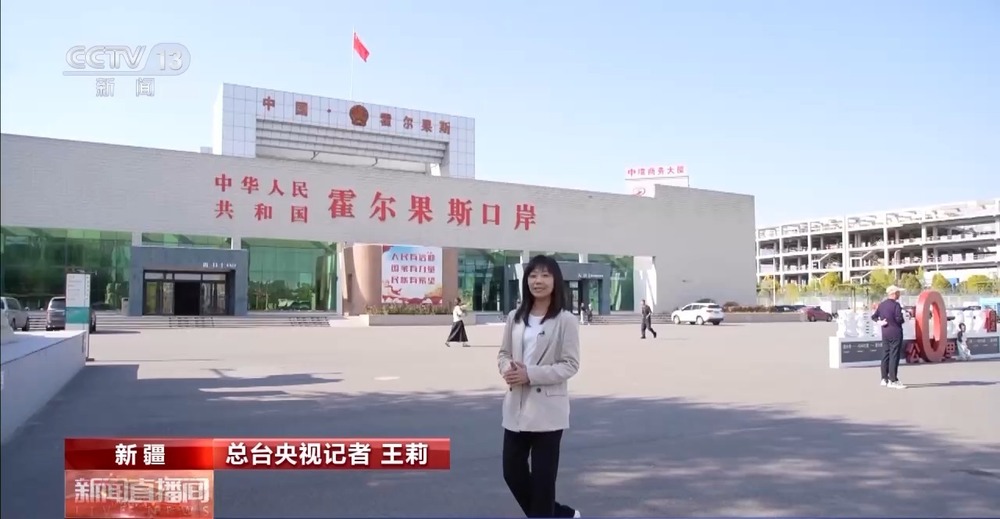 總臺央視記者 王莉:這里是位于新疆伊犁哈薩克自治州的霍爾果斯公路口岸,這座巍峨雄偉的建筑就是霍爾果斯第六代國門,這里與哈薩克斯坦隔河相望,是中國向西開放的重要窗口和連接亞歐大陸的“黃金口岸”。千年以前,霍爾果斯就是古絲綢之路上的重要驛站,一百多年前,霍爾果斯公路口岸正式通關(guān),從20世紀50年代的第一代國門,到如今的第六代國門,國門的變遷,見證著霍爾果斯的這座邊境城市的蓬勃發(fā)展。