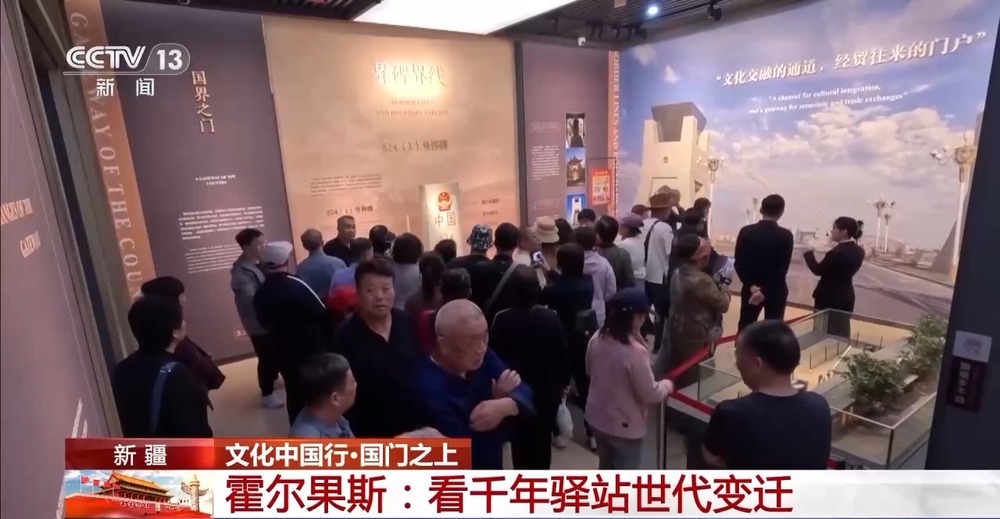 總臺央視記者 王莉:從霍爾果斯第六代國門向北,就來到了第五代國門。如今第五代國門雖然已經(jīng)不再承擔國門的功能,但是當?shù)匕阉慕ǔ闪嘶魻柟箛T文化展示館,通過文字、圖片、視頻向大家講述著國門的變遷,口岸的歷史。