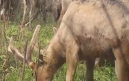 湖北石首麋鹿國家級自然保護(hù)區(qū)內(nèi),麋鹿們常常結(jié)成大群活動(dòng),而每每一見到美食,它們就抵不住誘惑,立馬沉浸式地埋頭享用起來。