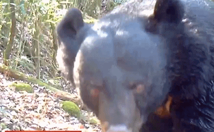 福建龍棲山國家級自然保護(hù)區(qū)里,黑熊看到攝像機(jī),先警惕地湊近聞了聞,再走近仔細(xì)觀察觀察,哎呀,還是不好判斷到底是啥?還是三十六計(jì)走為上計(jì)吧。