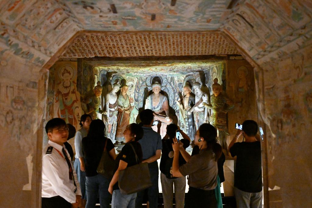 游客參觀在中華藝術宮(上海美術館)舉辦的“何以敦煌”藝術展。新華社發(fā)(陳浩明攝)