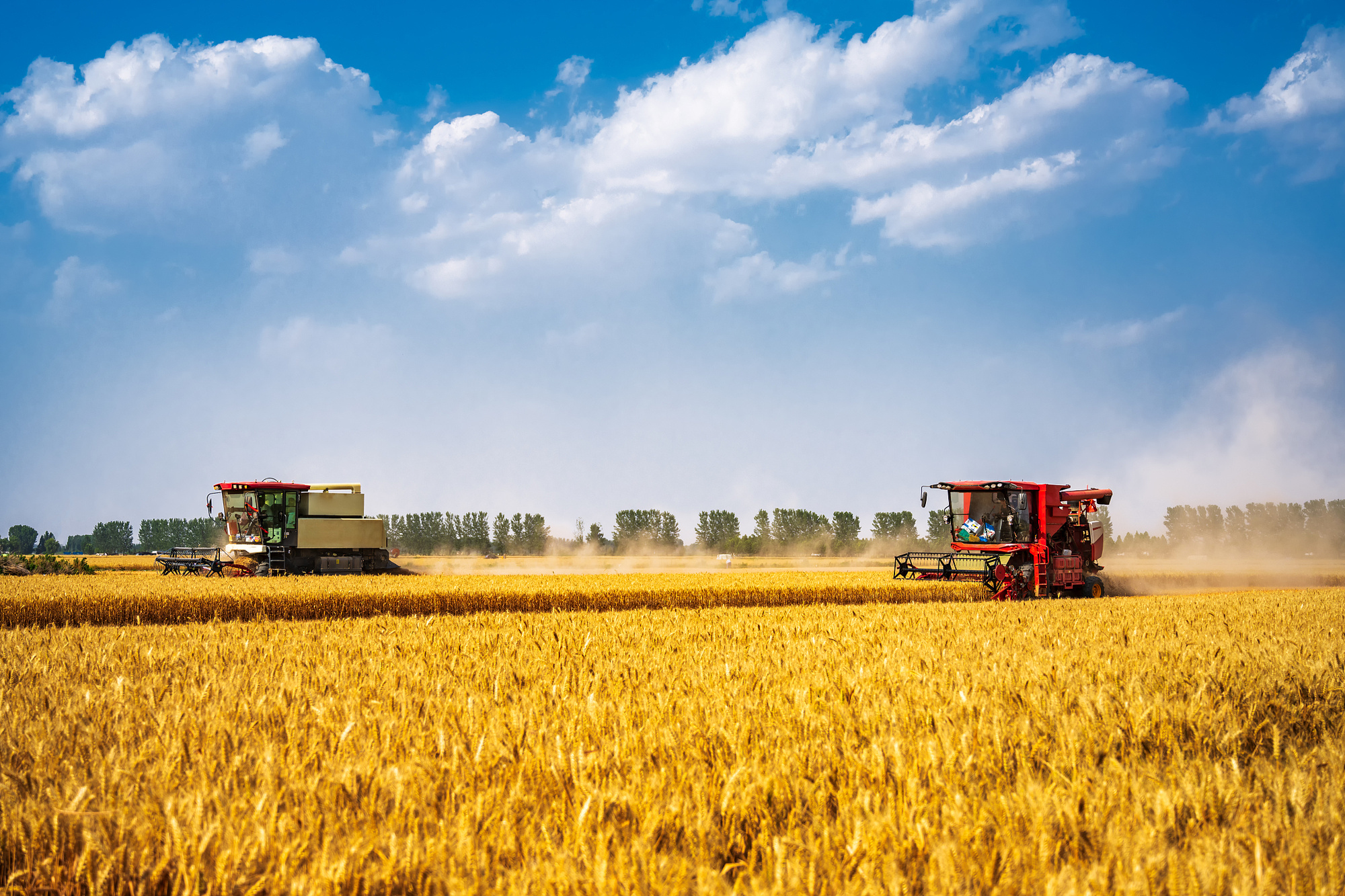 河南省鄭州市聯(lián)合收割機(jī)收割麥田場(chǎng)景