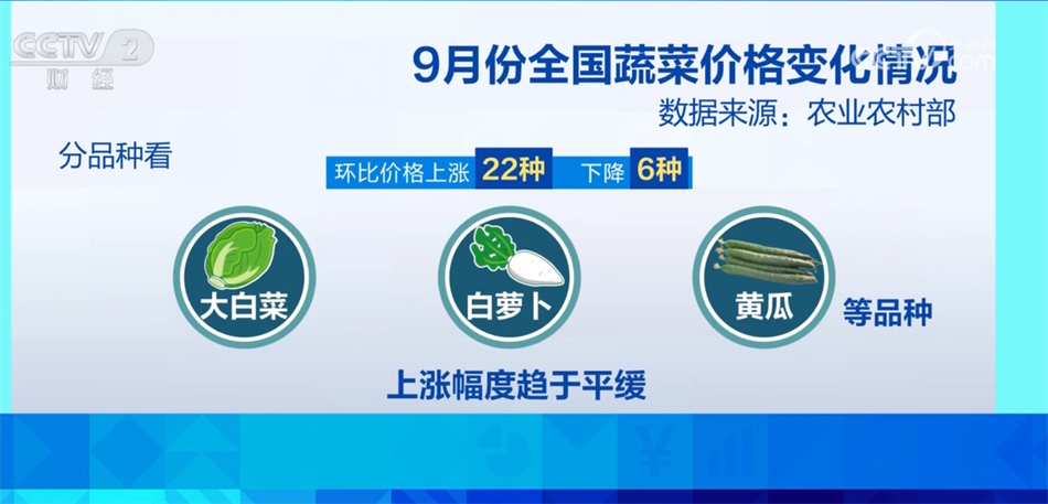 中國農(nóng)業(yè)科學(xué)院農(nóng)業(yè)信息研究所副研究員張晶分析稱:“9月份蔬菜價(jià)格上漲主要是因?yàn)椴焕鞖庥绊?。一是受大范圍較強(qiáng)冷空氣影響,東北、內(nèi)蒙古中西部、華北北部等地區(qū)降溫幅度較大,冷涼蔬菜部分品種提前退市,青椒、西紅柿等品種供應(yīng)銜接不夠順暢。二是疊加兩次臺風(fēng)效應(yīng)作用,江蘇、安徽、河南、山東等地降雨比較明顯,田頭蔬菜采收、運(yùn)輸有困難。”