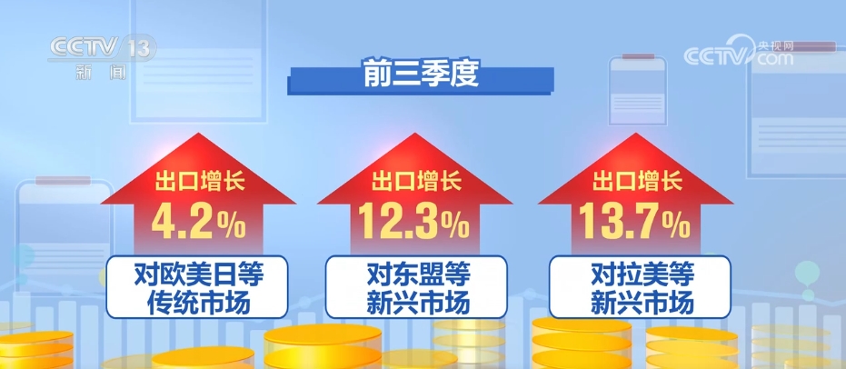 據(jù)海關(guān)統(tǒng)計,今年前三季度,我國進(jìn)出口32.33萬億元,同比增長5.3%;其中出口18.62萬億元,增長6.2%;進(jìn)口13.71萬億元,增長4.1%。