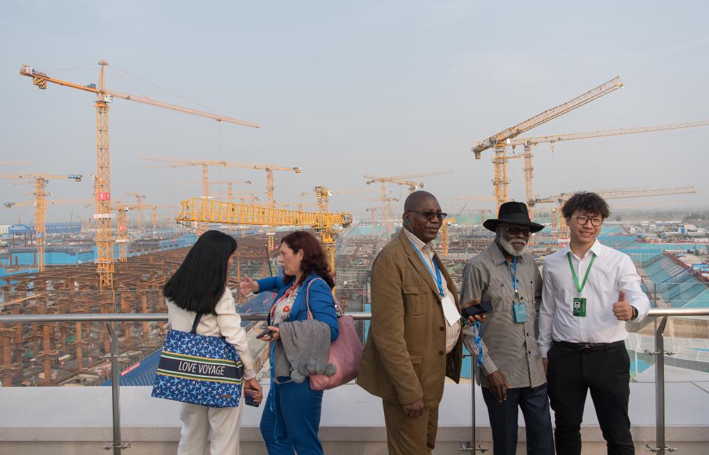 10月12日,外國(guó)友人參訪雄安新區(qū)啟動(dòng)區(qū)綜合服務(wù)中心。新華社發(fā)(劉尊拴 攝)