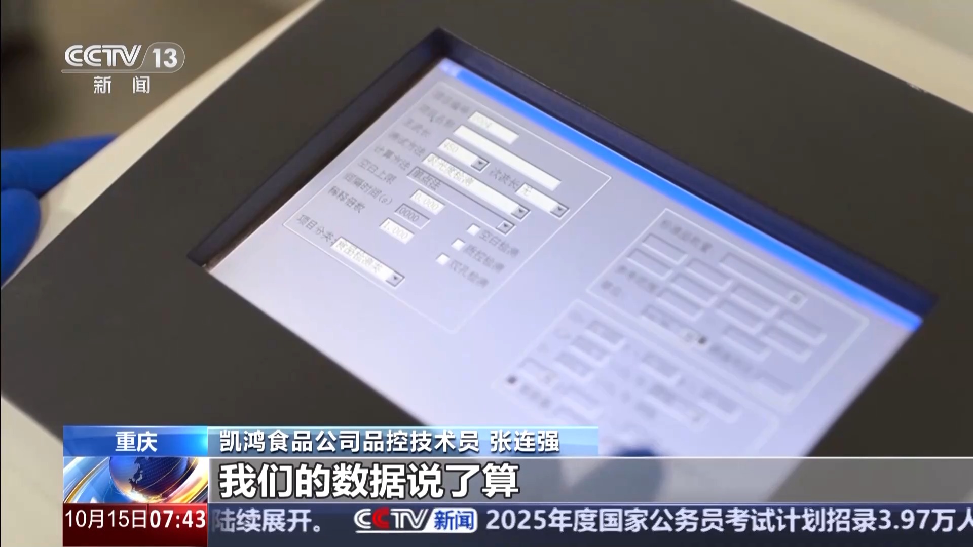 重慶凱鴻食品公司品控技術(shù)員 張連強:像牛肉就要檢測七項,比如說里面的過氧化脂,精確到了每百克不得超過0.25克,非常嚴格。產(chǎn)品好不好,能不能走向市場,老板說了不算,我們的數(shù)據(jù)說了算。