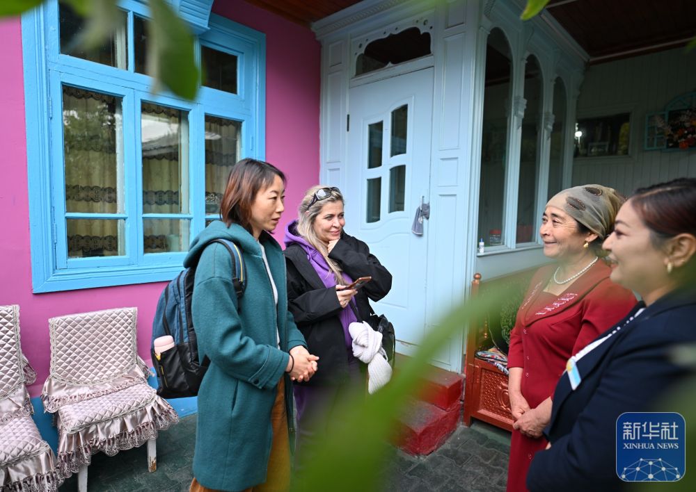 10月15日,與會嘉賓在伊寧市喀贊其民俗旅游區(qū)參訪。