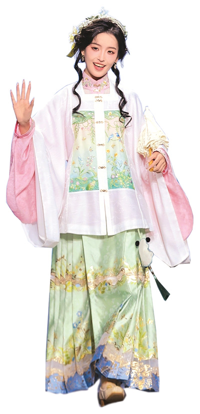 “除馬面裙外,目前市面上由宋制服裝中的褙子改良而來(lái)的服裝樣式也很受歡迎,明制服裝中的立領(lǐng)則被大量應(yīng)用于新中式服裝?!贝饔昵缯f(shuō),如今的漢服已兼具傳統(tǒng)文化和流行時(shí)尚的雙重屬性。
