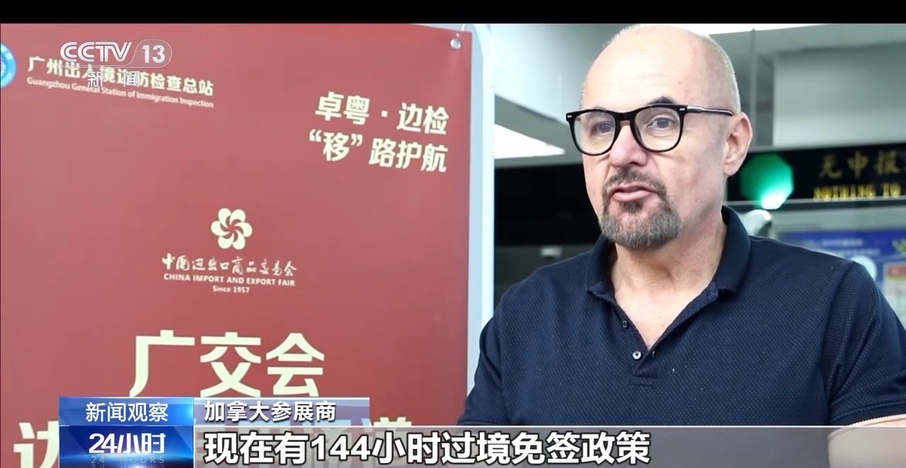 加拿大參展商:剛剛從南沙口岸入境參加廣交會(huì),現(xiàn)在有144小時(shí)過境免簽政策可以讓我順利入境。