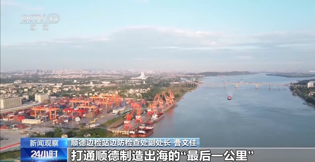 順德邊檢站邊防檢查處副處長(zhǎng) 曹文佳:在順德區(qū)4個(gè)貨運(yùn)碼頭,對(duì)載運(yùn)駐地企業(yè)成交訂單的出入境船舶,實(shí)行船舶邊檢查驗(yàn)“零待時(shí)”,一次辦妥出境手續(xù)就近出海,保障每天3000多個(gè)滿載“順德智造”電器產(chǎn)品的集裝箱,從走進(jìn)碼頭到裝船一路高效暢通,打通順德制造出海的“最后一公里”。