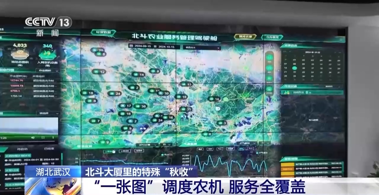 總臺央視記者 蔣樹林:智慧農機之所以能夠高效運轉,都是靠著北斗農業(yè)服務管理駕駛艙。通過湖北農機“一張網”可以實現應急調度,比如說在秋收的關鍵期如果某一個地方遭遇集中的連續(xù)降雨,就可以及時地進行調度,保障秋收秋種順利展開。