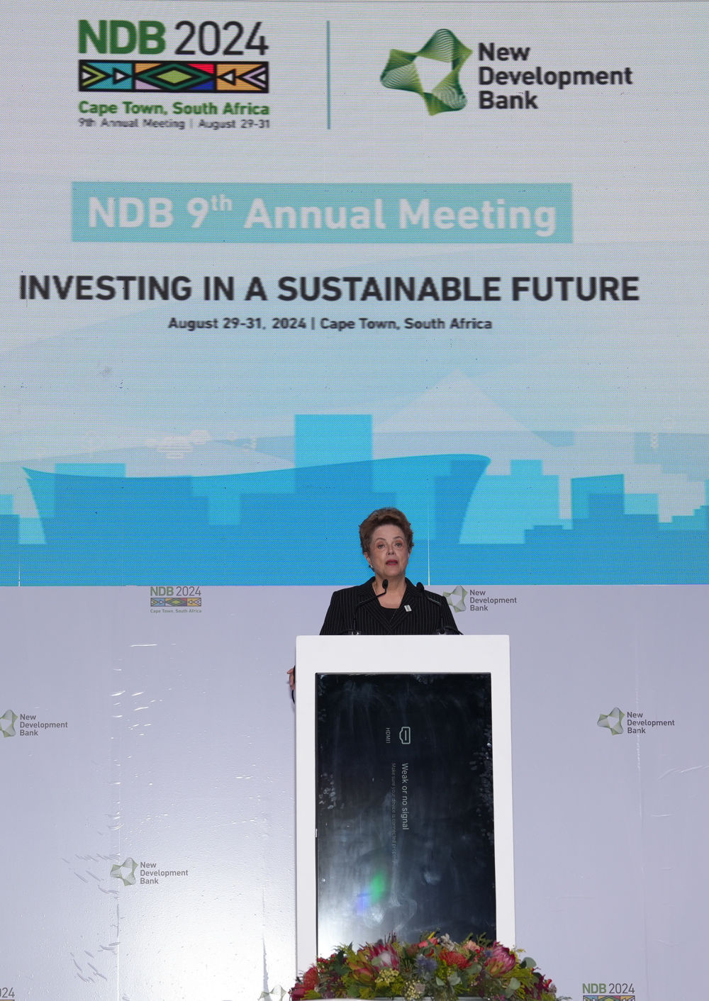 8月30日,在南非開普敦,新開發(fā)銀行行長羅塞芙在該行第九屆理事會(huì)年會(huì)開幕式上致辭。新華社記者王雷攝