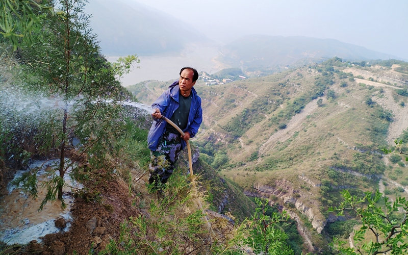 這支隊(duì)伍平均年齡超過(guò)45歲。從2004年至今的20年間,植樹攔泥沙、造林保水土,他們?cè)谝舜h種下近4萬(wàn)畝、280多萬(wàn)棵樹,為宜川縣境內(nèi)黃河沿岸石質(zhì)山地披上了3.7萬(wàn)畝“綠裝”。