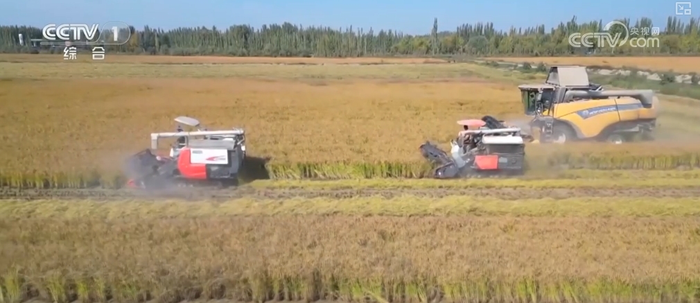 新疆和田:6.2萬(wàn)畝沙漠水稻進(jìn)入成熟收割期