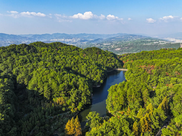 這是2024年10月15日在重慶市北碚區(qū)拍攝的縉云山國家級自然保護區(qū)景象(無人機照片)。新華社記者 王全超 攝