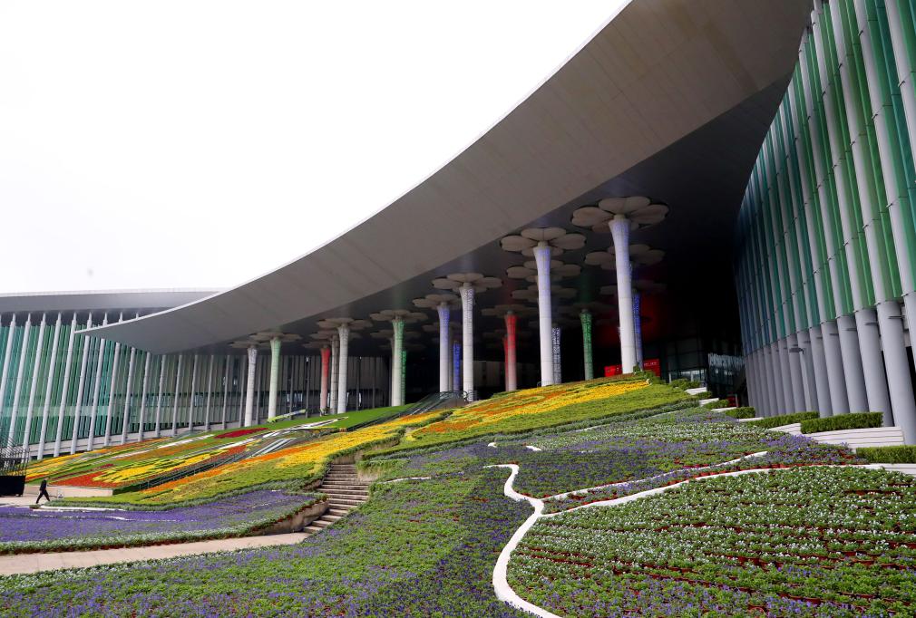 這是10月22日拍攝的國家會展中心(上海)南廣場花壇裝飾。新華社記者方喆 攝