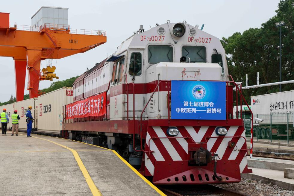 10月20日,首趟“中歐班列——進博號”抵達上海鐵路物流中心閔行貨場中儲專用線。新華社記者王翔 攝