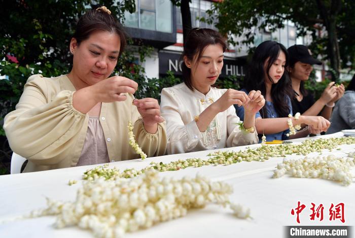 鄒曉娜在現(xiàn)場(chǎng)進(jìn)行茉莉花手環(huán)制作。她表示,茉莉花是福州的市花,和兩岸朋友一起制作茉莉花手環(huán),很有意義,而且能讓大家對(duì)福州有更深入的認(rèn)識(shí)。