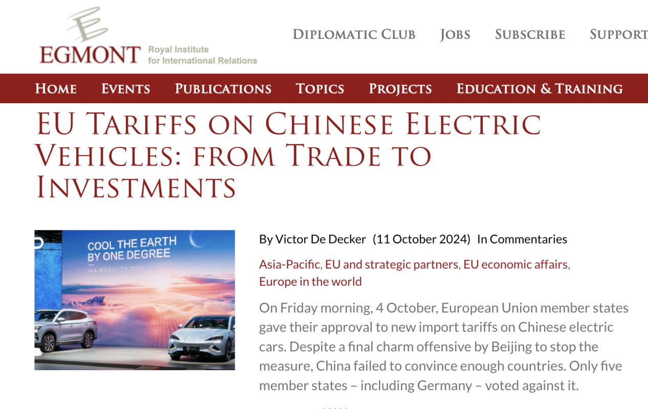 德德克10月11日文章《歐盟對(duì)中國(guó)電動(dòng)汽車的關(guān)稅:從貿(mào)易到投資》截圖
