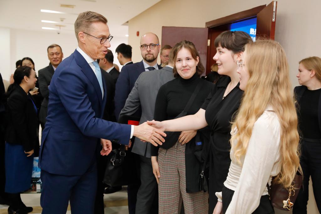 在回答復(fù)旦大學(xué)芬蘭留學(xué)生提問時,斯圖布說,留學(xué)生群體是促進(jìn)兩國人文交流的最佳使者。他以自身的海外求學(xué)經(jīng)歷為例,鼓勵更多芬蘭學(xué)生到中國交流學(xué)習(xí)?!傲魧W(xué)不僅是學(xué)習(xí)中文的一種方式,同時可以幫助學(xué)生們拓寬眼界、增長見識,回國后向更多人分享自己的所見所聞,成為中國文化在芬蘭的傳播者。”他說。