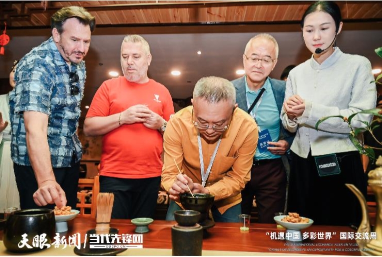 打卡“天下第一壺”景觀,參訪團(tuán)層層爬樓,領(lǐng)略“壺中”的每一處風(fēng)情,體驗(yàn)茶道茶藝,欣賞茶山茶歌,真可謂是“茶里乾坤大,壺中日月長(zhǎng)”。