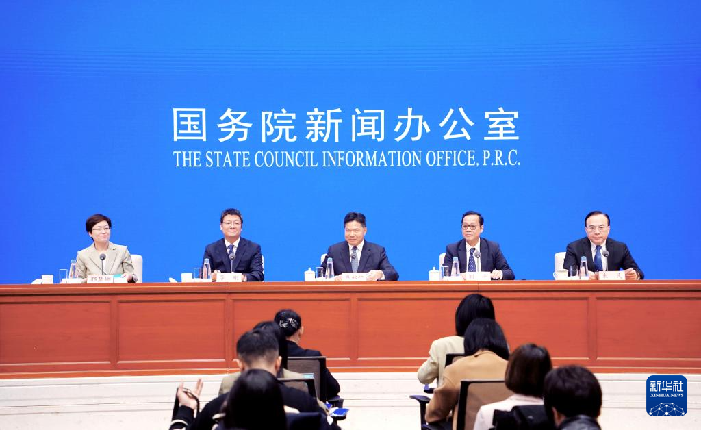 11月1日,國(guó)務(wù)院新聞辦公室在北京舉行新聞發(fā)布會(huì),商務(wù)部副部長(zhǎng)盛秋平、上海市人民政府副秘書長(zhǎng)劉平、商務(wù)部市場(chǎng)運(yùn)行和消費(fèi)促進(jìn)司司長(zhǎng)李剛、上海市商務(wù)委員會(huì)主任朱民介紹中國(guó)國(guó)際消費(fèi)中心城市有關(guān)消費(fèi)月活動(dòng)情況,并答記者問(wèn)。新華社記者 潘旭 攝