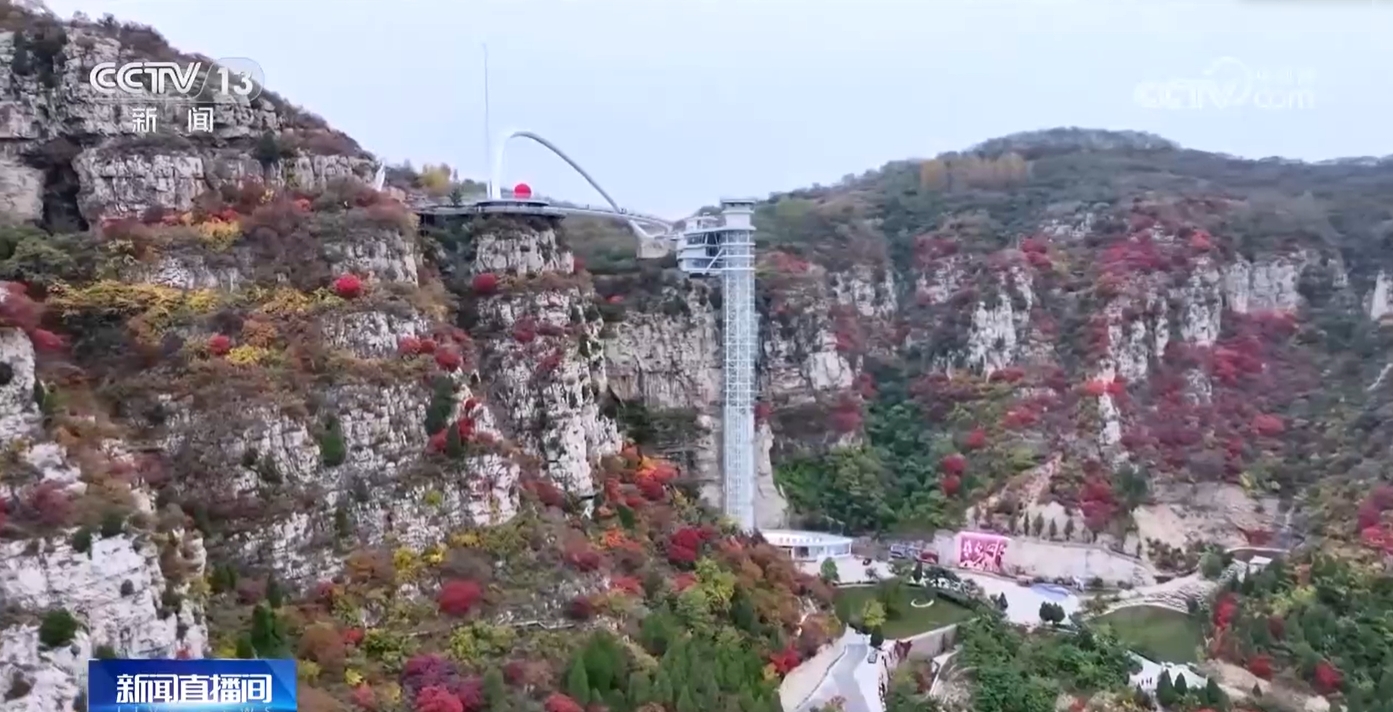 這是山東淄博市的紅葉柿巖景區(qū)里,萬(wàn)畝紅葉林鋪滿山間,登高遠(yuǎn)眺,層林盡染。游客們穿行其間,感受這撲面而來(lái)的秋韻。