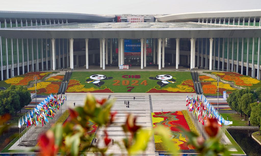 這是11月2日拍攝的第七屆中國(guó)國(guó)際進(jìn)口博覽會(huì)舉辦地——國(guó)家會(huì)展中心(上海)南廣場(chǎng)。新華社記者 劉穎 攝