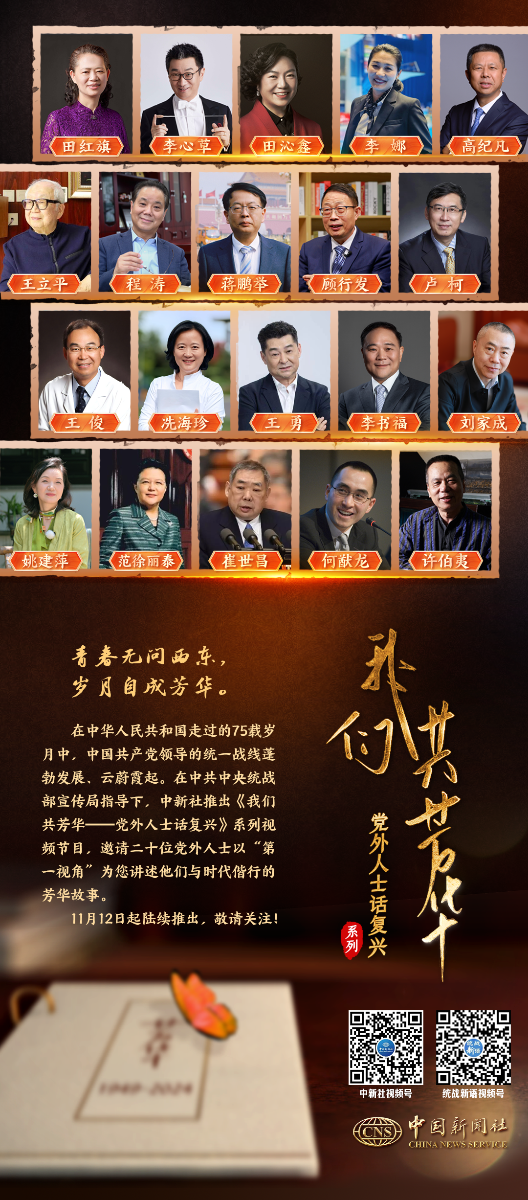跨山越海,我們赴約依舊,雨雪風(fēng)霜,待你芳華如初。在中共中央統(tǒng)戰(zhàn)部宣傳局指導(dǎo)下,中新社推出特別策劃《我們共芳華——黨外人士話復(fù)興》,“第一視角”講述新中國走過的七十五載光陰。歷時八個月傾情制作,百余場次拍攝記錄二十位嘉賓的芳華記憶。超強(qiáng)嘉賓陣容,請戳海報↓↓↓