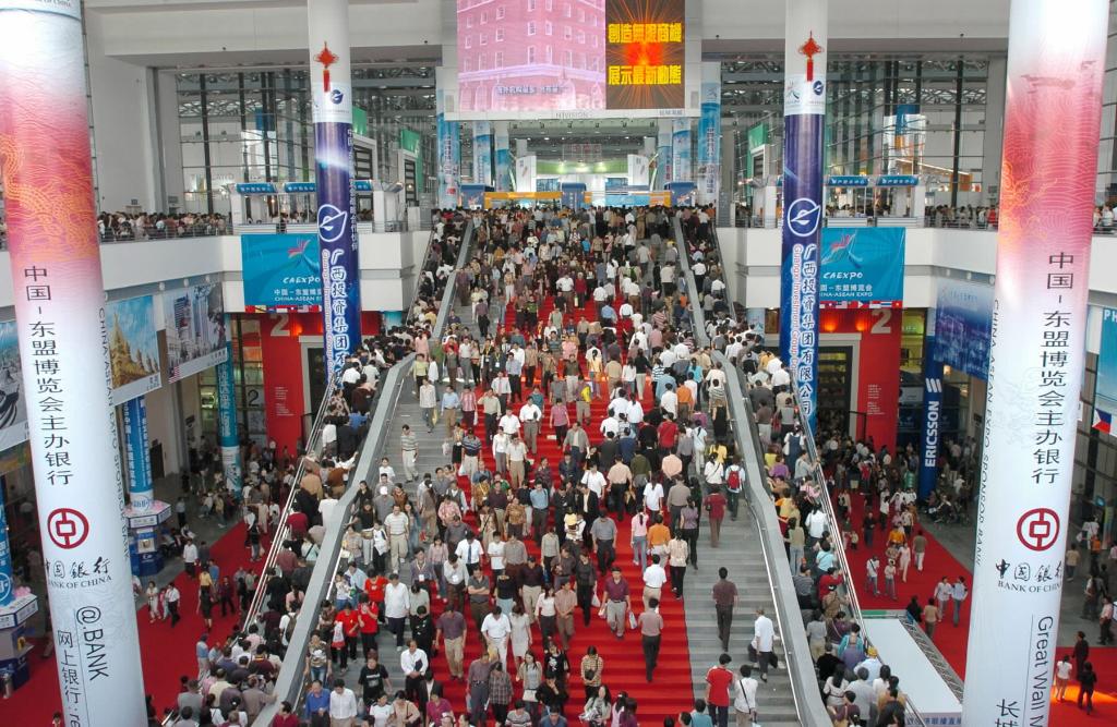 2004年11月6日,在廣西南寧舉行的首屆中國-東盟博覽會展廳內觀者如潮。新華社記者 劉廣銘 攝