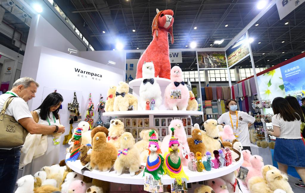 2021年5月7日,在海南??谂e行的首屆中國國際消費品博覽會(簡稱“消博會”)上,人們在秘魯“溫暖駝”展位參觀?! ?img alt="" oldsrc="W020241109768561928138.jpg" src="./W020241109768561928138.jpg" />