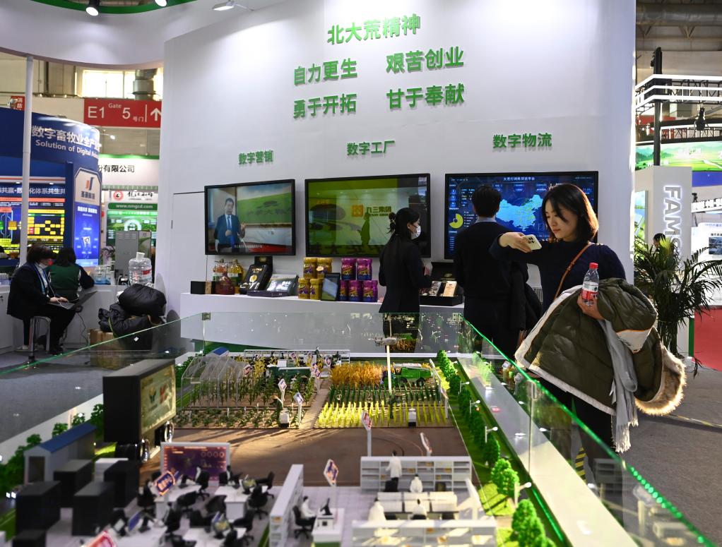 2023年11月30日,參觀者在首屆中國國際供應鏈促進博覽會(簡稱“鏈博會”)綠色農業(yè)鏈展區(qū)北大荒集團展臺前觀看智慧育種解決方案。新華社記者 蔡湘鑫 攝