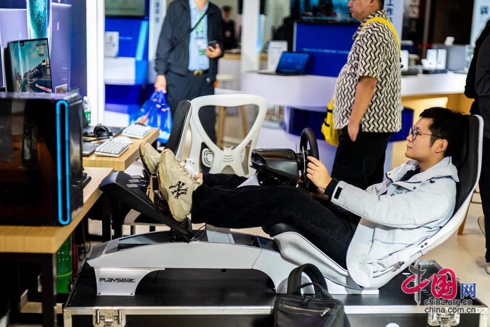 展區(qū)體驗模擬駕駛游戲。中國網記者