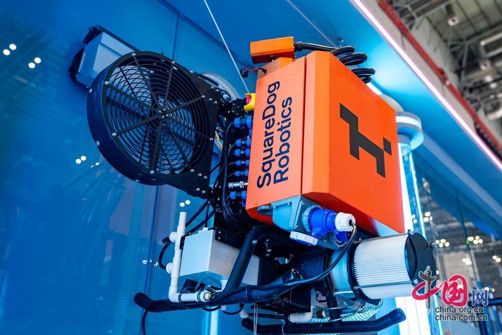 進博會人工智能專區(qū)展示的外墻清潔機器人。中國網記者