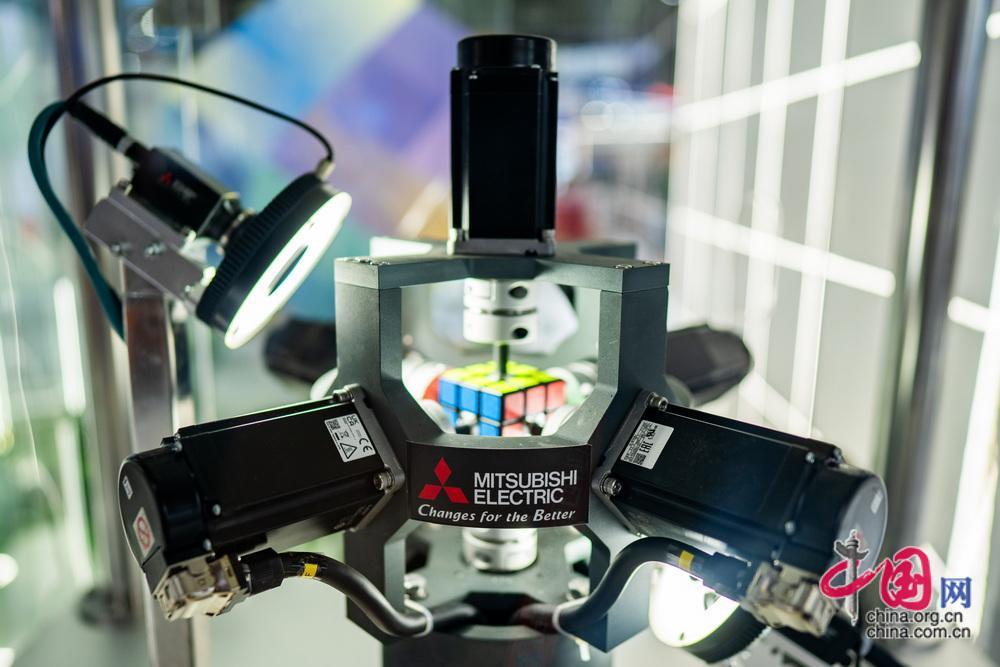 三菱帶來的魔方機器人,該機器人曾打破魔方復原吉尼斯世界紀錄。中國網記者