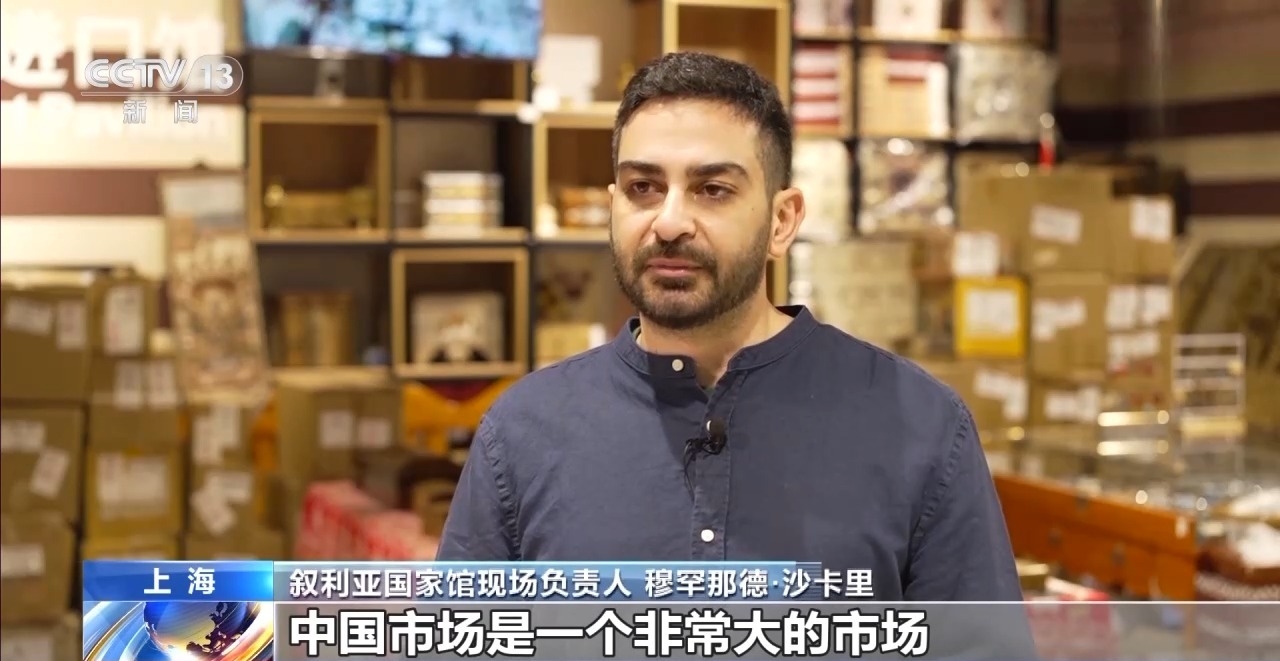 敘利亞國家館現(xiàn)場負(fù)責(zé)人 穆罕那德·沙卡里:中國市場是一個(gè)非常大的市場,我們團(tuán)隊(duì)決定,必須要有人成為中國市場和敘利亞市場之間的橋梁,看中國消費(fèi)者是否喜歡我們的產(chǎn)品,我們需要做什么調(diào)整來滿足中國消費(fèi)者的需求。