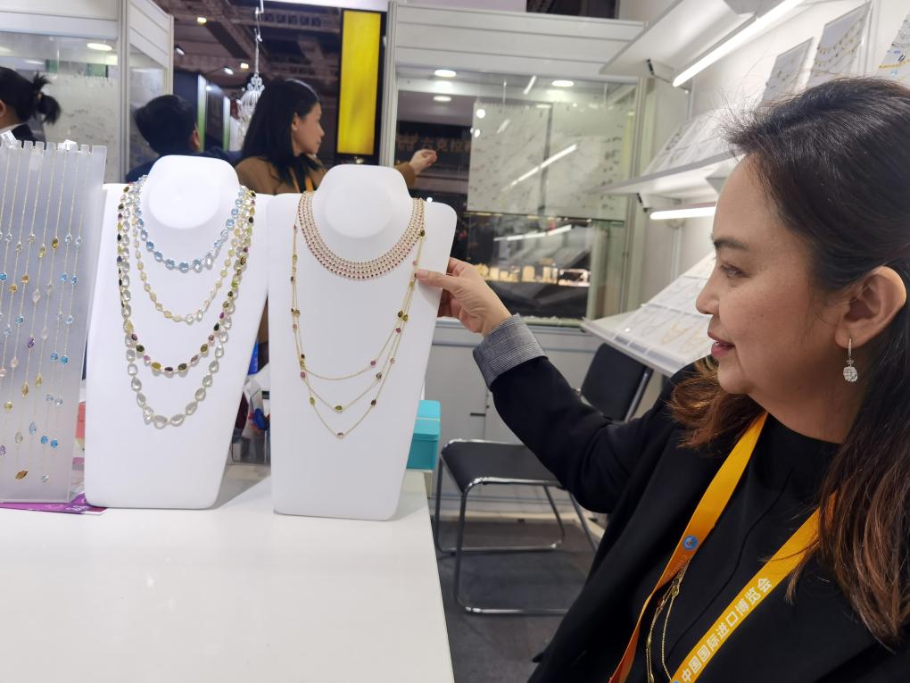 得益于共建“一帶一路”倡議和中國-東盟自由貿(mào)易協(xié)定的深化落實(shí),阿拉尼婭一家的珠寶企業(yè)有了進(jìn)軍中國廣袤市場的新計(jì)劃。這次她和家人帶來的珠寶飾品多達(dá)上百種款式,有鑲嵌紅寶石、祖母綠、碧璽等的項(xiàng)鏈、手鏈、戒指、吊墜等,吸引采購方駐足。