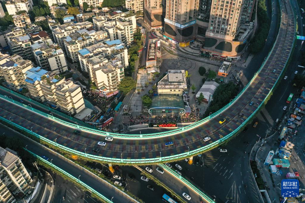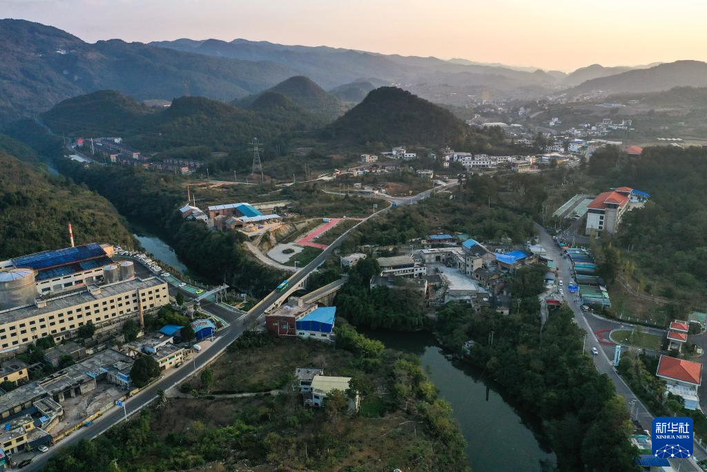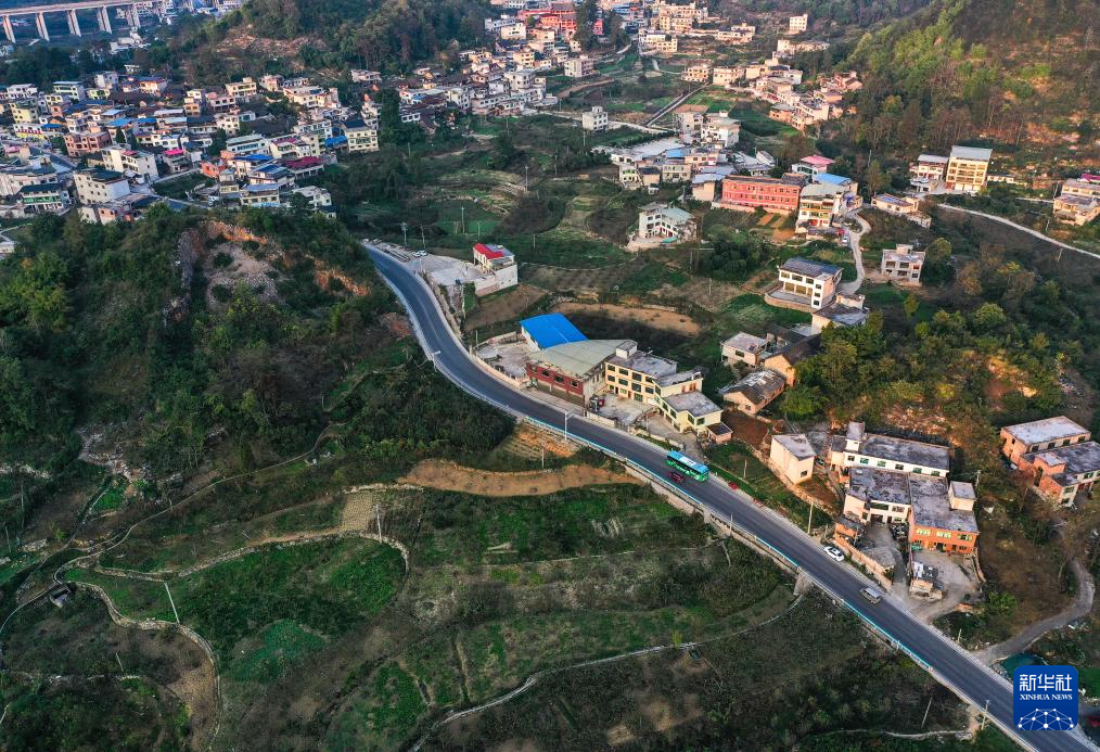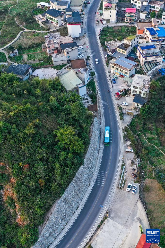 11月10日,252路公交車行駛在貴陽市烏當(dāng)區(qū)水田鎮(zhèn)境內(nèi)(無人機(jī)照片)。