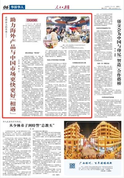 “進博會讓海外企業(yè)來到中國,親身感受中國的發(fā)展變化,了解中國的開放包容和多元,華僑華人在其中發(fā)揮著不可或缺的作用?!闭缙钴娝f,為進博會忙碌的華商不僅為中外經(jīng)貿(mào)往來織密網(wǎng)絡(luò),也為中外人文交流搭建橋梁。