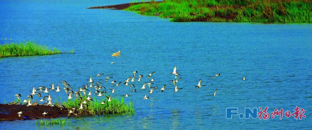 閩江河口濕地飛鳥翩躚。陳瑞霖 攝