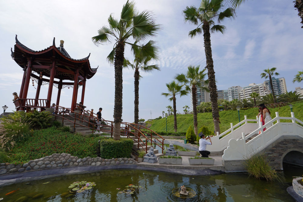 2024年11月9日,人們在秘魯首都利馬米拉弗洛雷斯區(qū)的中國公園內(nèi)休閑。
