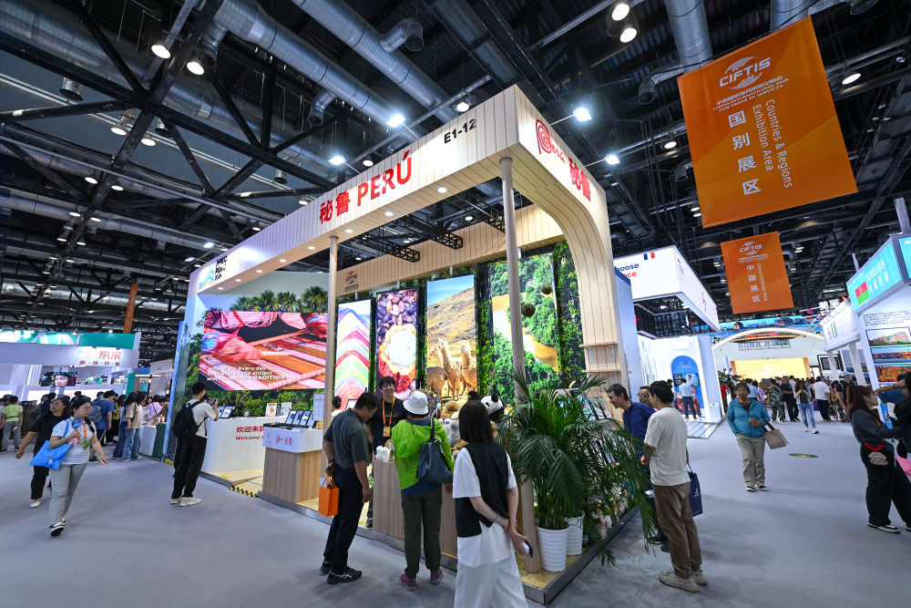 這是2024年9月15日在北京服貿(mào)會(huì)國家會(huì)議中心展區(qū)拍攝的秘魯展臺(tái)。