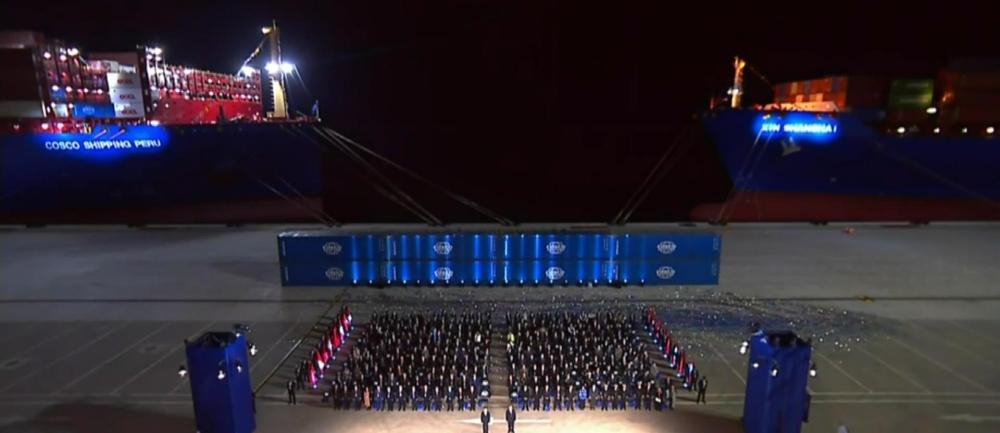 開(kāi)港儀式現(xiàn)場(chǎng)停泊著兩艘集裝箱輪。其中一艘中遠(yuǎn)“秘魯輪”剛剛抵港,而另一艘“新上海輪”即將離港前往上海?!皬腻X凱到上?!?,已成為現(xiàn)實(shí)。